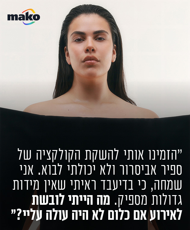 "יש קצת שיפור. אני כן יכולה להיכנס לחנות ולמצוא דברים, לא כמו בגיל 16 שהייתי נכנסת לחנות ומתחילה לבכות כי לא הייתי מוצאת כלום. אחד הדברים שהכי נחרטו לי בזיכרון זה קמפיין לקולקציית ברבי שחברה כלשהי עשתה עם דוגמנית פלאס סייז, וכל כך רציתי את זה. הגעתי לחנות וזה לא עלה עליי, אני בחיים לא אשכח את ההתמוטטות שהיה לי. אם גם דוגמנית פלאס סייז מייצגת משהו והוא לא עולה עליי, אז כנראה שמשהו דפוק בי. שתביני, כשאני מגיעה לארצות הברית ועושה אודישנים, אני הבחורה הכי קטנה בחדר בפער. אז איך פה בארץ, שאנחנו חושבים שאנחנו כל כך מתקדמים, אנחנו עדיין תקועים עד מידה 44? הממוצע של אישה בארץ זה מידה 42–44, אז איך חסר פה פלח מאוד גדול של האוכלוסייה?".