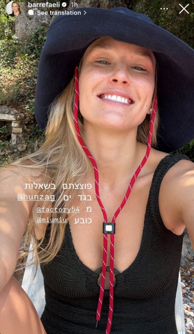 רגע אחרי שהשמיים נפתחו בר רפאלי התעופפה לחופשה קצרה והראתה איך לובשים בגד ים שלם בשיא הסטייל. גם בתחום האקססוריז רפאלי לא מאכזבת, כשהיא חובשת כובע רחב שוליים ששומר לה על עור הפנים. הכובע כולל שרוכי הידוק שמזכירים וייב של מטיילים אבל בקטע מגניב כמובן