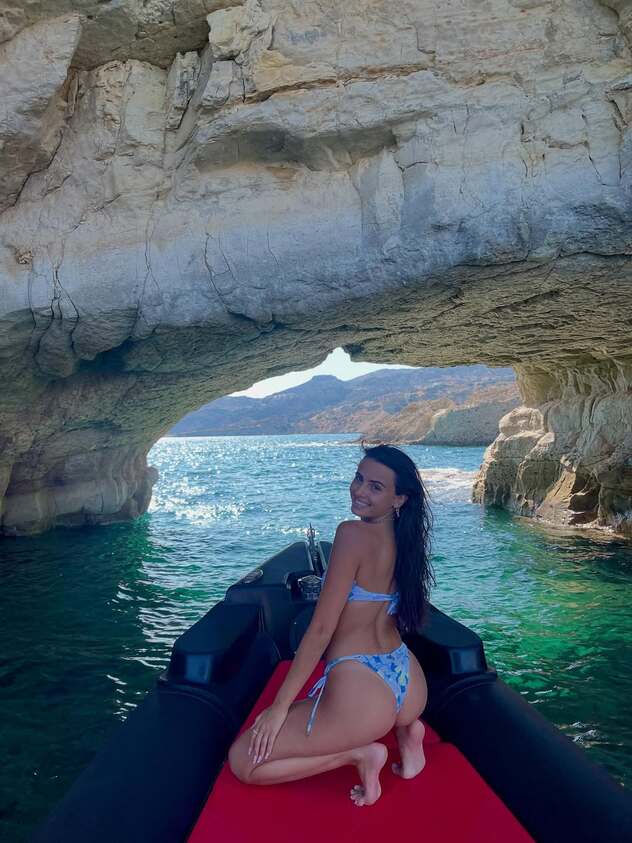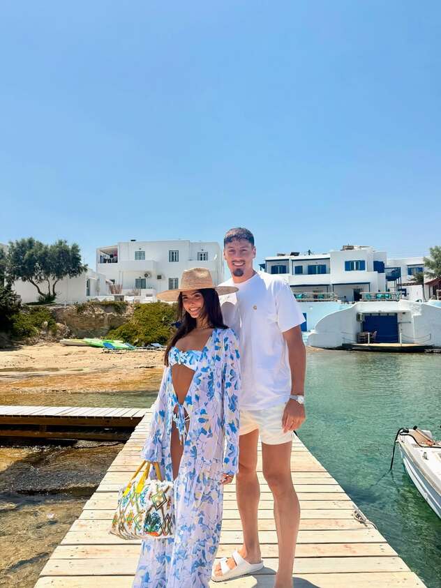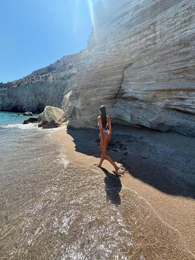 אחרי החתונה מגיע ירח הדבש, ומהתיעוד של קים באינסטגרם קל לראות כמה היא נהנית – ואף מתרגשת – מהנופים והחופים של יוון, אבל לא שוכחת גם לצלם ולתייג את הביקיני ושמלת החוף התואמת, שניהם מרשת e-bikini.