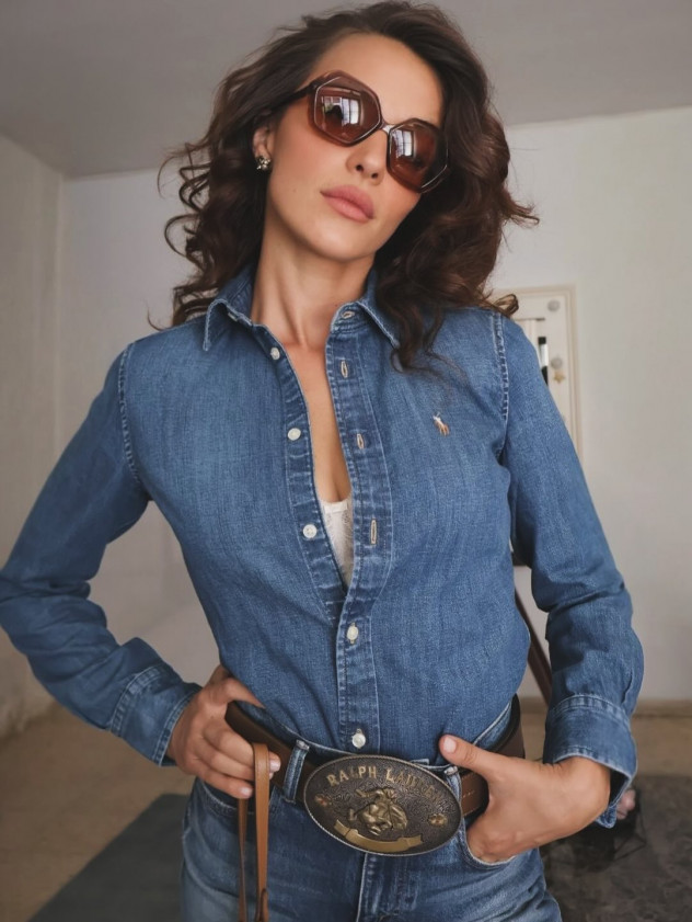 מי שלקחה את הסגנון הזה צעד קדימה היא יאנה יוסף, שתועדה בלוק טוטאל-דנים מבית ראלף לורן. המראה כלל חולצת כפתורים דקה עם הלוגו המזוהה של רוכב הסוס, בשילוב מכנסי ג’ינס ארוכים, תיק צד ומגפיים מזמש חום – כולם מחזקים את סגנון ה"ווסטרן" המובהק.