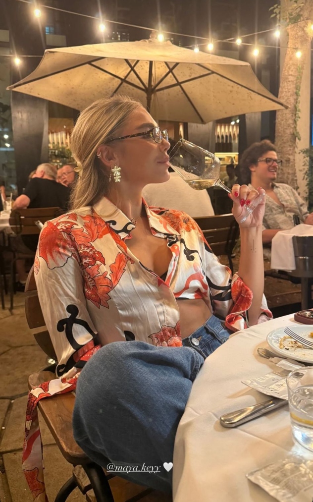 הסתיו בפתח אבל מאיה קיי נראית כמו קמפיין מושלם לקיץ. מאיה הלכה על טריו של כחול לבן וצהוב חמאה וזה כל כך יפה יחד. מדובר בחצאית פיקניק בכחול לבן שפשוט הורסת עליה במיוחד עם החולצה שהיא כאילו לבנה פשוטה אבל יש לה טוויסט מהמם בגב והתיק – הו התיק. מושלם לקיץ אבל יעבוד נפלא גם בחורף הישראלי
