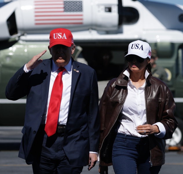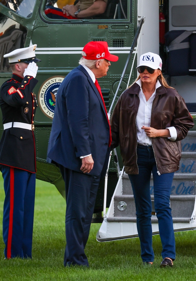 בחלק מהתמונות תועדה טראמפ כשהיא חובשת כובע מצחייה עם הכיתוב USA ומרכיבה משקפי שמש גדולים בסגנון טייסים – פריטים שלקחו את הלוק אפילו צעד נוסף קרוב יותר לסרט האייקוני.