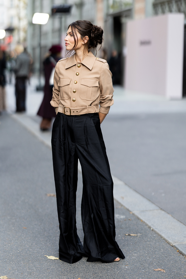 בתצוגה של צימרמן בלונדו לבשה מכנסיים שחורים רחבים וחולצת ג׳קט באווירת ספארי עם חגורה מובנית. אהבנו גם את התסרוקת – שיער אסוף עם קווצות שיער שממסגרות את הפנים ויוצרות מראה לכאורה מבולגן, שברור שנעשה בקפידה. תמיד נחמד להתעדכן.