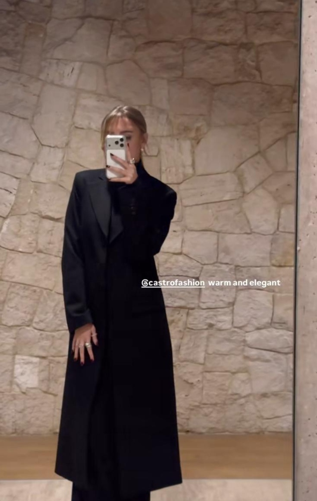 אהבנו גם את “המחמם הרשמי” של הערב – מעיל צמר שחור של קסטרו, שדאג להגן על נודלמן מהקור.
