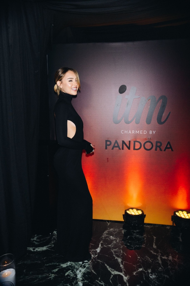 בתוך המחשוף שולבו שרשראות כסופות של מותג התכשיטים פנדורה (שלקח חסות על האירוע), ויחד הן יצרו מראה דרמטי, בלינגי ומלא תנועה.