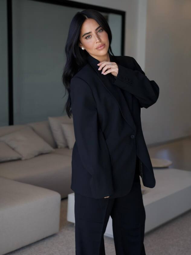 בר כהן, כך נראה, מצאה נוסחה מוצלחת במיוחד לאיך להרגיש טוב וגם להיראות סופר־סטייל במעמד הלא פשוט הזה, עם חליפת שני חלקים שחורה בעיצוב מחויט, אך לא צמוד מדי לגוף.