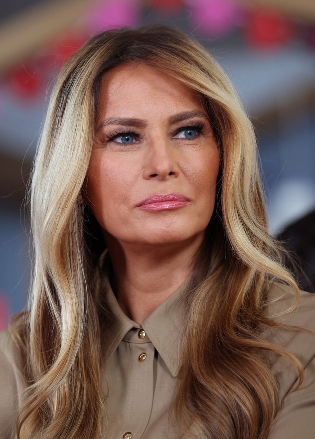 אי אפשר היה להתעלם מהבלונד הבהיר של מלניה, ככל הנראה תוצאה של מלאכת גוונים חדשה ומוקפדת. השיער שלה, שעוצב בגלים רכים ופזורים, היה ללא ספק האקססורי המרשים ביותר בלוק הזה.