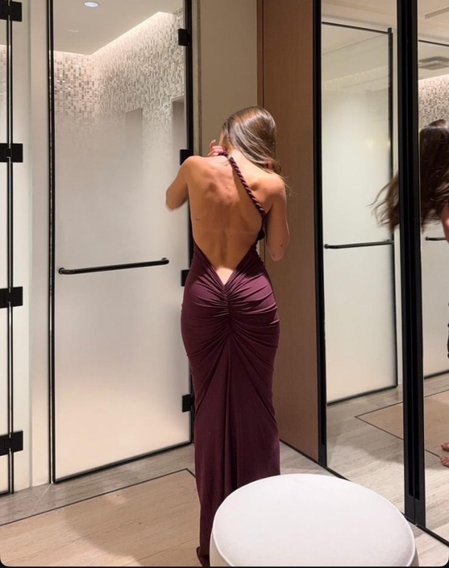 אבל כתמיד, הייתה זו דווקא מלתחת הערב של דיאן שבאמת הביאה את הדברים לנקודת רתיחה. הפעם בחסות שמלת מקסי משגעת שהיא ליקטה משירות ההשכרה Romea, בגוון שזיף עמוק. עמוק אף יותר הוא מחשוף הגב, שצולל מטה עד שאי אפשר יותר, והבד מתכווץ סביבו לאפקט אקסטרה מחמיא. רצועה אלכסונית בודדה המלופפת סביב כתף אחת השלימה כאן אירוע אחורי שלם.
