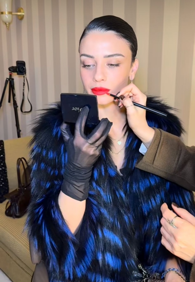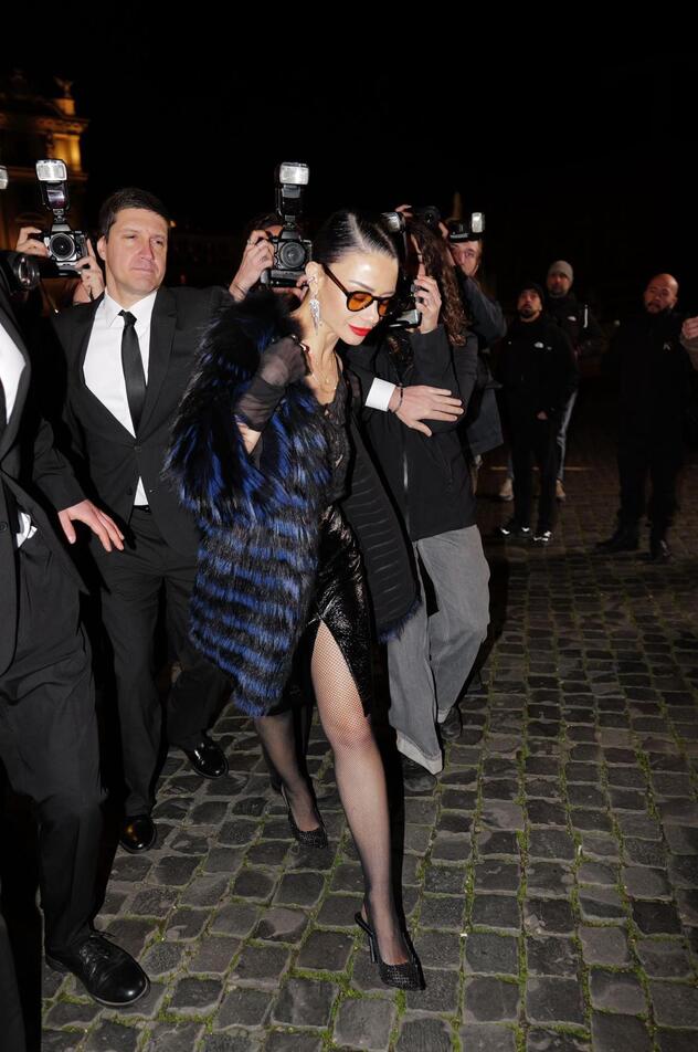 אווירת ה"דולצ'ה ויטה" התיישבה על טייב בדיוק מופלא, במראה ערב של כוכבת איטלקייה במנוסה מצלמי הפפראצי. נינט התמודדה באומץ עם מזג האוויר האיטלקי הקר, כשיצאה לצילומי לילה באאוטפיט זוהר במיוחד: אלימלך הרכיב עבורה מערכת אקלקטית הכוללת גופיית תחרה עם כתפיות דקות וחצאית עיפרון צמודה ממנה מבצבצים גרבוני רשת, כשאת הלוק חותם מעיל דמוי פרווה בצבעוניות כחולה-שחורה ועגיל קטן מנצנץ מהשיניים שלה.