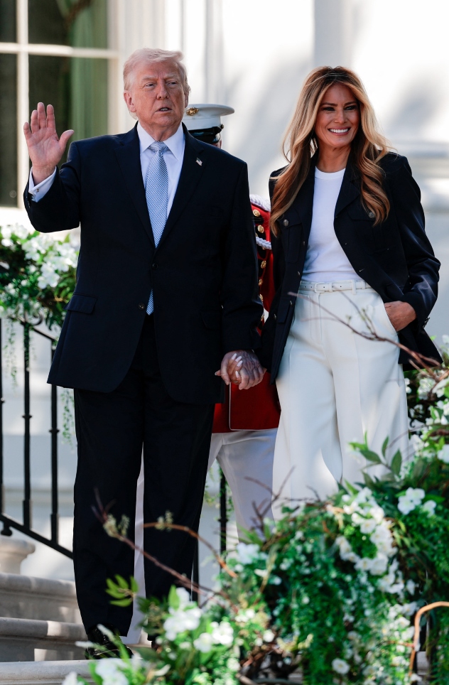 מלניה טראמפ הוכיחה פעם נוספת שגם כשהיא מארחת ילדים על מדשאות הבית הלבן, הסטייל האישי שלה נותר בלתי מתפשר, וגם לבישה של מכנסיים בהירים במיוחד לא מרתיעה אותה.