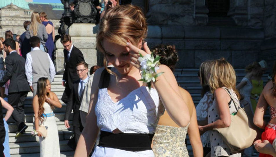 ארין פייזלי בת ה-18 מקנדה החליטה שהיא לא הולכת לשלם סכומים לא הגיוניים על שמלת טקס סיום התיכון, ובמקום, הכינה שמלה המורכבת מדפי מחברת המתמטיקה שלה. על השמלה כתבה באדום "מלאלה", שם הארגון הפועל למען השכלתן של נשים ברחבי העולם. מבחינתנו, היא קיבלה 100 בבגרות